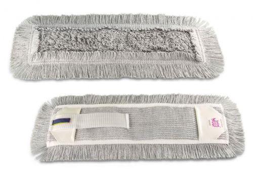 Моп универсальный - может использоваться как с держателями с системой крепления в карманы (отжим вручную), так и один "язык" (например держатели Falpi Clack, Pongal и др.) для использования с механическим отжимом. Производится в размерах 40 см и 50 см. Ширина текстильной стропы, используемой для изготовления "языков" - 60 мм." для использования с механическим отжимом. Производится в размерах 40 см и 50 см.