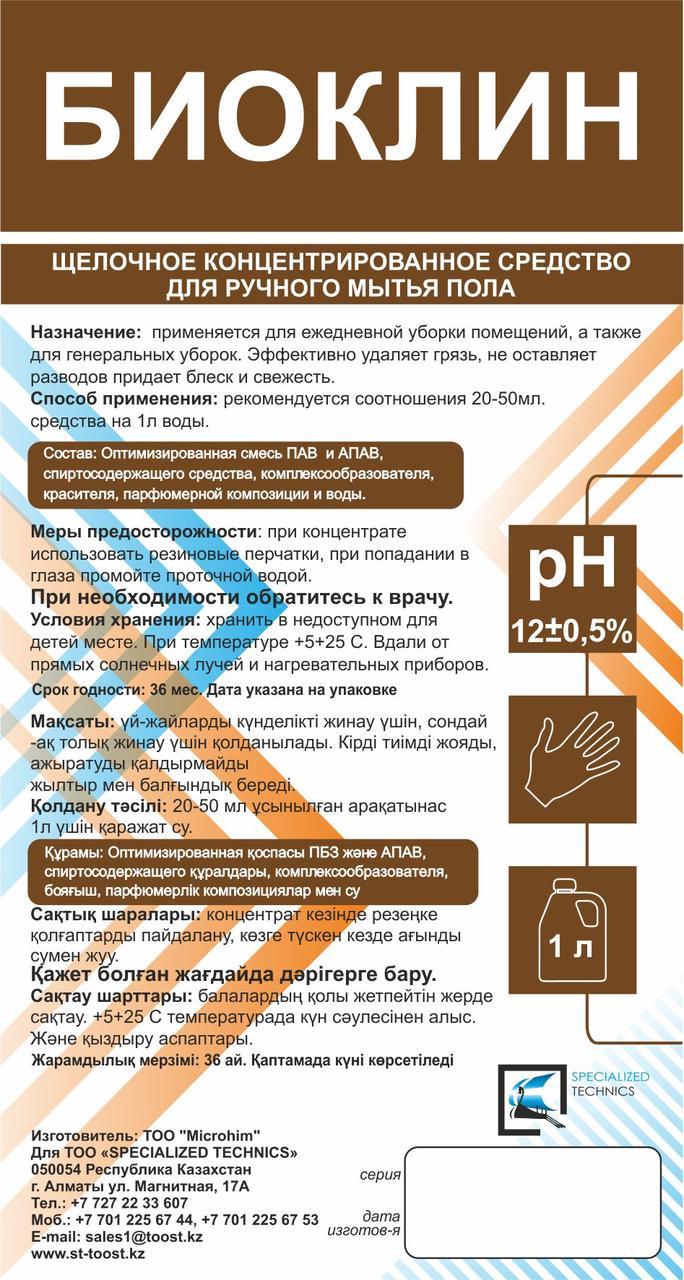 Внешний вид и физико-химические свойства: Бесцветная прозрачная жидкость со слабым специфическим запахом. Показатель pH 1% раствора 12±0,5